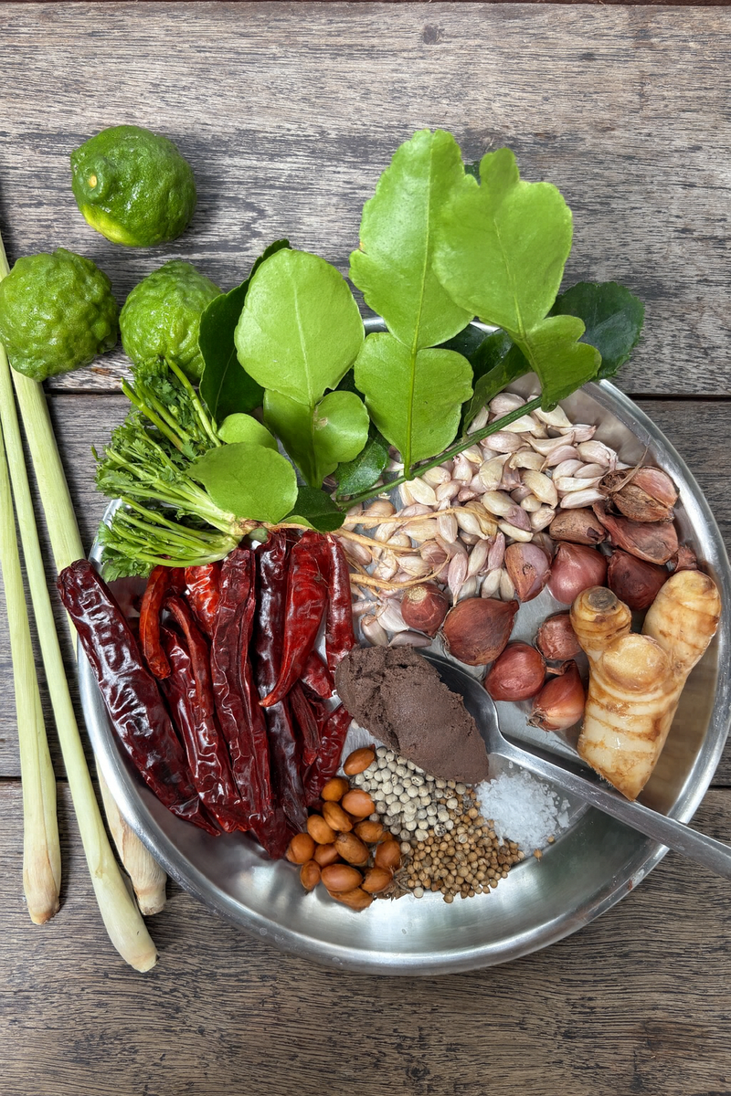 A fragrant, Thai curry paste made with dried chilies, toasted spices and fresh herbs, pounded traditionally for maximum aroma and depth.