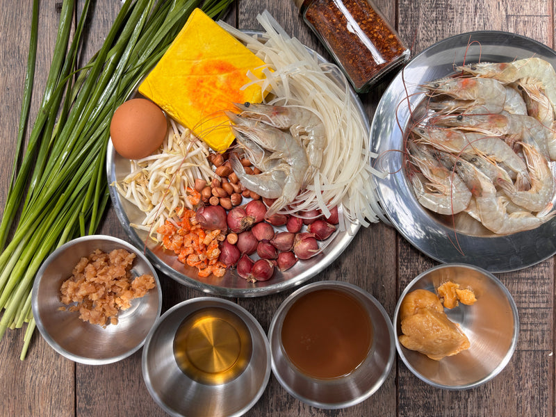 Pad Thai goong (ผัดไทยกุ้ง) – classic wok-fried rice noodles in tamarind sauce with juicy shrimp, egg, tofu, bean sprouts, chives, and peanuts. Sweet, sour, and savory in balance. Street food perfection.
