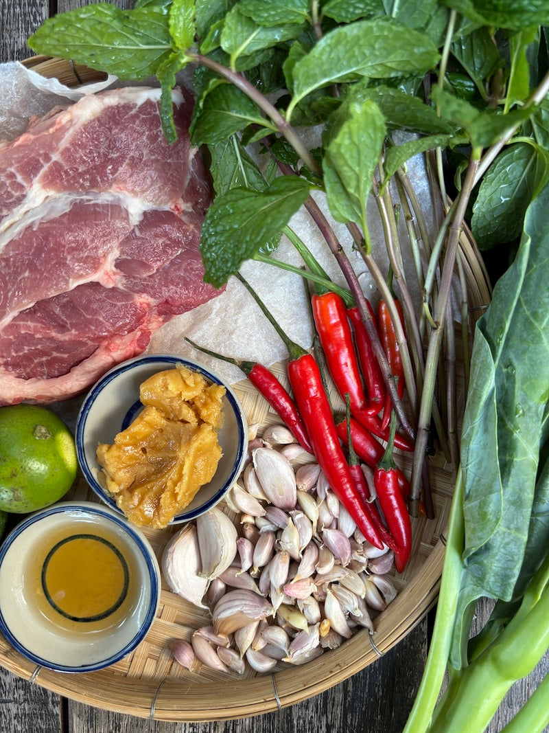 Tender pork meets crisp greens, with intense lime acidity balanced by fish sauce and the punch of raw garlic and chilies. It is one of those Thai dishes where freshness and balance matter more than technique. When done right, every bite is clean, spicy, and instantly refreshing.